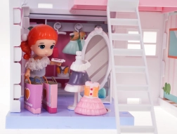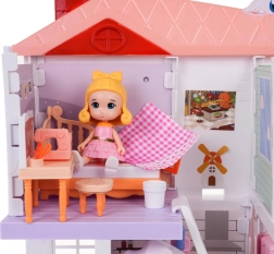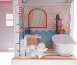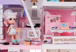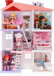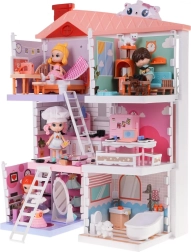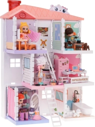 Kućica za lutke je čudo puno boja i detalja, koje će očarati svako dijete. U prizemlju ćete pronaći garderobu i kupaonicu, dok vas na prvom i drugom katu očekuju kuhinja, dnevni boravak i spavaća soba, sve opremljeno stiliziranim namještajem i dodacima. Bogato uređeni interijeri potiču djecu na razvijanje mašte i kreativnosti.