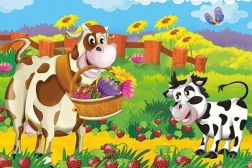 Uživajte u zabavi s ovim drvenim puzzlama s motivom kravičke i cvijeća, izrađenim od kvalitetnog afričkog drveta.