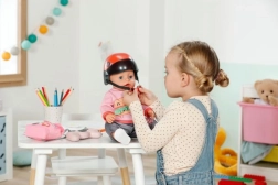 Štiti od ozljeda i istovremeno dodaje lutki BABY born stilsku vožnju zahvaljujući pomičnom viziru i razigranim dekoracijama.