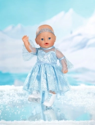 Elegantan set za BABY born lutke 43 cm donosi čaroliju zimskog kraljevstva u svakodnevnu igru. Lagané sjajne haljine s nježnim prekrivačem lako se oblače, a zahvaljujući dijademu frizura će držati i pri svakoj pirueti. Bijele cipele u stilu klizaljki potiču maštu i dječje priče o umjetničkom klizanju.