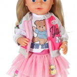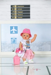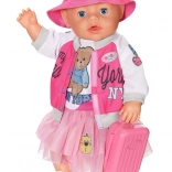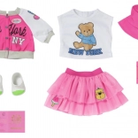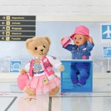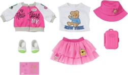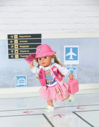 Priuštite svojoj lutki BABY BORN savršen outfit za put. Ovaj ružičasto usklađen set spaja udobnost i stil – od lagane jakne s ikoničnim motivom NY preko razigrane majice s medvjedićem do pahuljaste til suknje i udobnih cipela. U kompletu je i sladak kovčeg te putovnica za realistične scenarije igre.