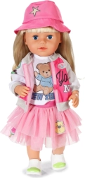 Stilski putni set za lutke BABY BORN veličine 43 cm pretvara svaku igru u avanturu. Sadrži usklađenu jaknu s motivom NY, majicu s medvjedićem, ružičastu til suknjicu, kapu, cipele i praktičan mini kovčeg. Idealno za kreativnu igru na putovanju, lako odijevanje i dugotrajnu zabavu.
