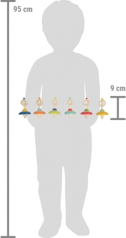 Tradicionalna drvena zvrk-kačica s uzicom brenda Small Foot spaja zabavu i učenje. Dovoljno je povući uzicu i promatrati kako se zvrk zavrti! Izdržljivo masivno drvo i živopisne boje potiču finu motoriku, koordinaciju ruka–oko i strpljenje. Na izbor je 6 varijanti boja (navedite preferenciju u napomeni; ako nije na zalihi, šaljemo nasumično). Cijena za 1 kom.