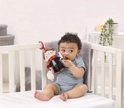 Zahvaljujući univerzalnom klipu igračku lako pričvrstite na kolica, krevetić ili autosjedalicu, pa će biti vaš suputnik kod kuće i na putovanjima. Kvalitetna izrada i sigurni materijali su zajamčeni.