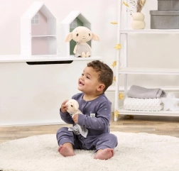 Tješilica Dobby je nježan, mazni pratitelj inspiriran svijetom Harryja Pottera. Siva dekica s natpisima i zvjezdicama privlači na prvi pogled, dok mekano tjelešce s velikim ušima i kvalitetnim prošivima osigurava sigurno i ugodno maženje za svaku bebu.