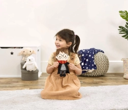 Ovaj službeno inspirirani plišanac nosi ikonični crni plašt i crveno-žuti (grifindorski) šal, koji zajedno s okruglim naočalama i ožiljkom u obliku munje vjerno podsjećaju na omiljenog čarobnjaka. Odlično pogoduje razvoju osjetila i umirujućim ritualima prije spavanja.