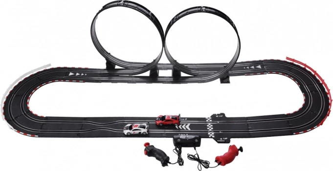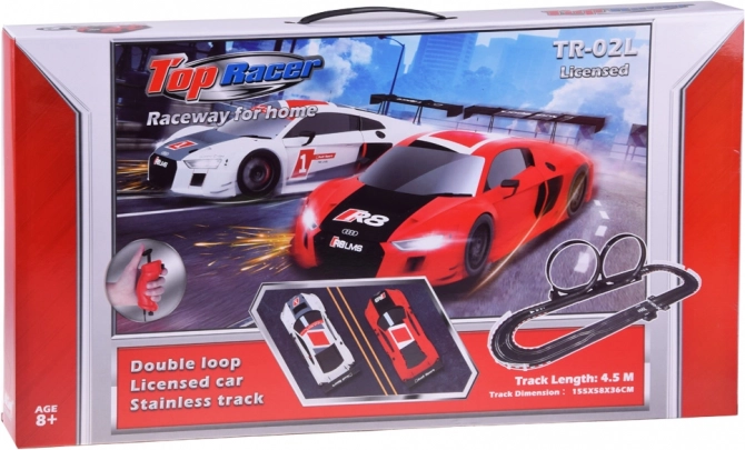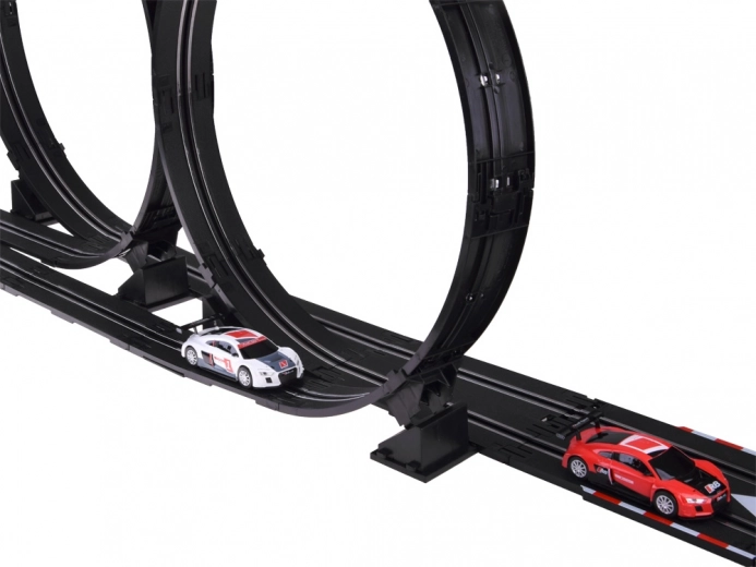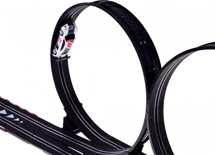 Uživajte u napetim utrkama kod kuće s električnom autodrumom duljine 4,5 m s 2 licencirana AUDI automobila i dvostrukim loopingom. Precizno upravljivi žičani upravljači s funkcijom gasa, realistčne ograde i oznake te napajanje iz mreže jamče brzu, stabilnu i sigurnu vožnju bez baterija.