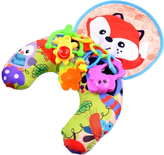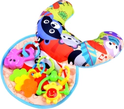 Ovaj univerzalni dječji valjak odličan je pomoćnik kod kuće i na putu. Tijekom igre na trbuščiću beba ima ispred sebe pričvršćene igračke koje je motiviraju na istezanje i podizanje glavice, čime prirodno jača mišiće leđa i vrata. Šuškava mini podloga i šarene zvečke potiču senzorni razvoj i vježbaju finu motoriku.