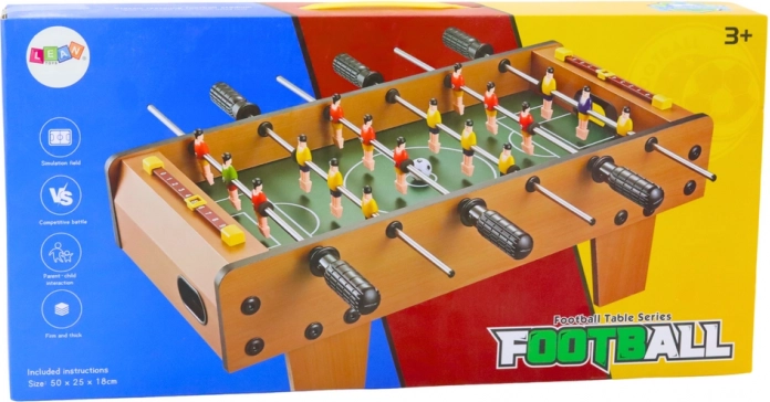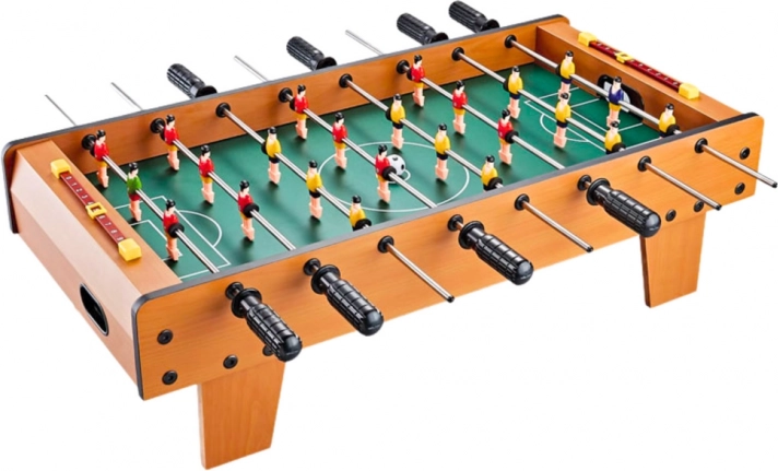 Za početak utakmice treba sastaviti momčadi – što je više igrača, turnir će biti realističniji i napetiji, ali možete bez problema zaigrati i jedan na jedan. Pravila utakmice su jasna – svatko odabere svoje boje, stane na pravu stranu i... gol! Praktične protuklizne ručkice dobro leže u ruci, pa je lako upravljati šipkama s nogometašima. Drveni, visoki rubnici štite igralište kako lopta ne bi ispala izvan granica terena. Odmah iza vratara nalaze se otvori za loptice, u koje se ubrajaju postignuti golovi. Sastavni dio konstrukcije igraće površine su i dva brojača golova koja se ručno podešavaju – s obje strane nalazi se ljestvica s brojevima od 0 do 9, što olakšava praćenje rezultata tijekom susreta.
