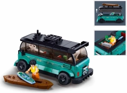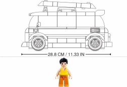 Konstrukcijski set nudi detaljan model surfna vozila s realističnim elementima kao što su prozori, kotači i krovni nosač tereta.