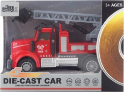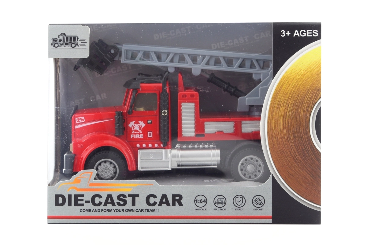 Metalni model vatrogasnog vozila. Pakirano u kutiji. Dimenzije pakiranja približno 16,5 × 12,5 × 7 cm. Dob 3+