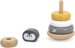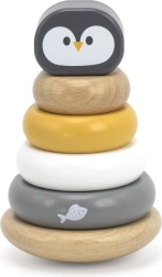 Pastelne nijanse i simpatična glavica pingvina potiču znatiželju. Djeca prirodno usvajaju boje, veličine i redoslijed pri slaganju tornja.