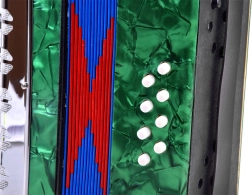 - Autentičan izgled – tipke i bas gumbi kao na pravom akordeonu.