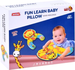 Šareni stabilizacijski jastučić za bebe sa životinjskim motivom i visećim igračkama pruža potporu pri igri na trbuhu i tijekom odmora. Zahvaljujući šuškavoj mini podlozi i zvečkema potiče razvoj vida, sluha i dodira, podupire koordinaciju pokreta i obogaćuje svaku igru. Lagani, mekani i jednostavan za održavanje – idealan pratitelj kod kuće i na putovanjima.
