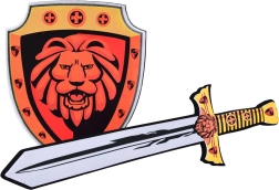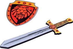 Ovaj dječji set spaja meki pjenasti materijal s atraktivnim dizajnom viteške opreme. Štit s lavljom glavom i detaljno ukrašen mač potiču maštu i pozivaju na pustolovne priče – od turnira do obrane kraljevstva.