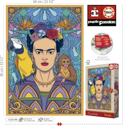 Uživajte u opuštanju uz slaganje kvalitetnih puzzli s motivom FRIDA KAHLO. Pakiranje sadrži 1500 dijelova te dodatno ljepilo gratis za jednostavno fiksiranje gotove slike. Nakon slaganja puzzle imaju dimenzije približno 60 × 85 cm.