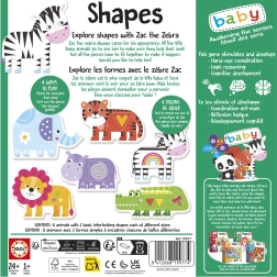 Upoznajte svog malog istraživača s oblicima na razigran način. EDUCA baby slagalica Istraži oblike sa zebrom Zakom pomaže djeci od 24 mjeseca razlikovati kvadrat, trokut, krug i pravokutnik zahvaljujući uparivanju slika životinjica s dvama povezanim oblicima.