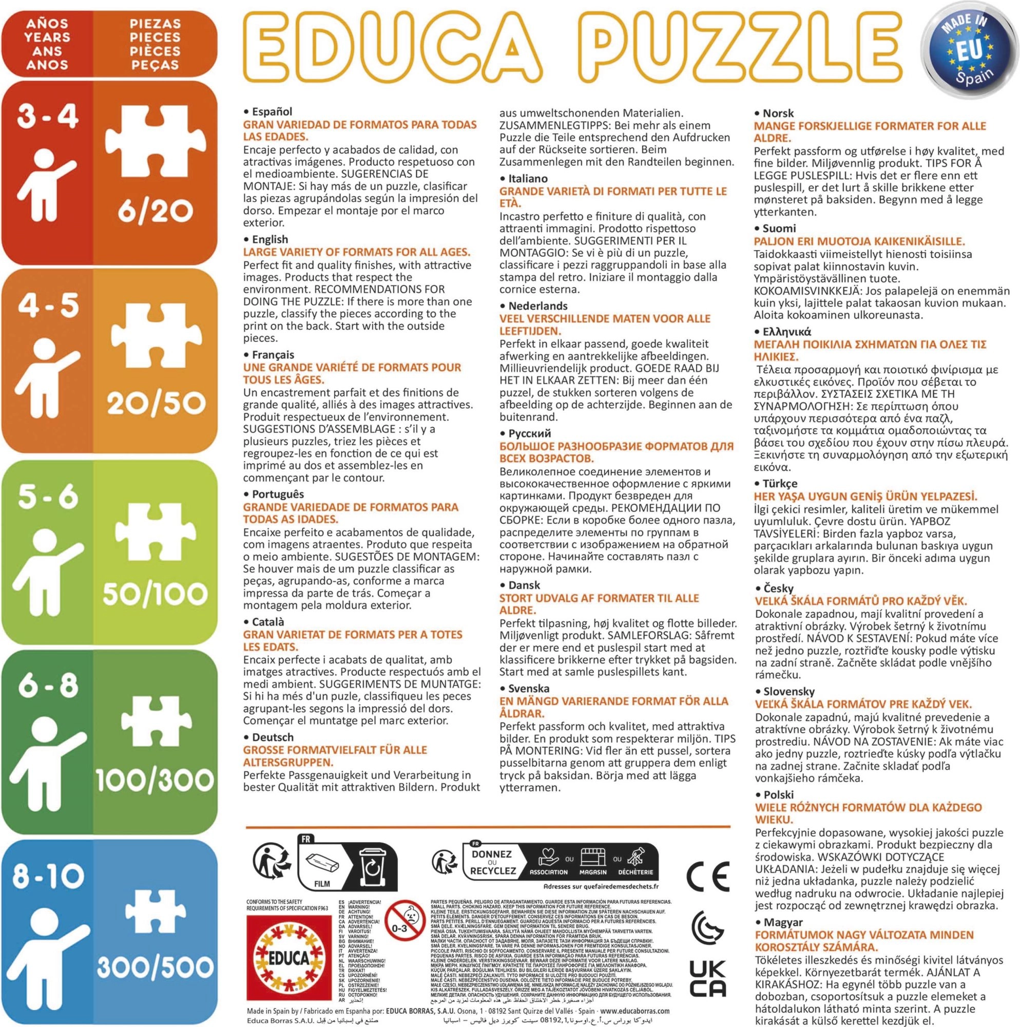 Zabavno dvostruko pakiranje dječjih puzzli marke EDUCA s motivom ČUDESNA KOLERICA I CRNI MAČAK donosi 2×100 dijelova u živim bojama i gotovu dimenziju cca 40 × 28 cm.