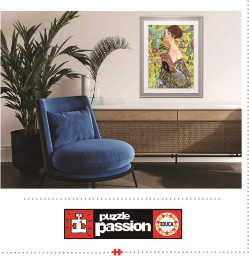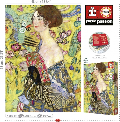 Puzzle EDUCA Dama s lepezom, 1000 dijelova, kvalitetna izrada, dimenzije 48 × 68 cm. Uključeno besplatno ljepilo. Sjajan izbor za opuštanje ili kao poklon.