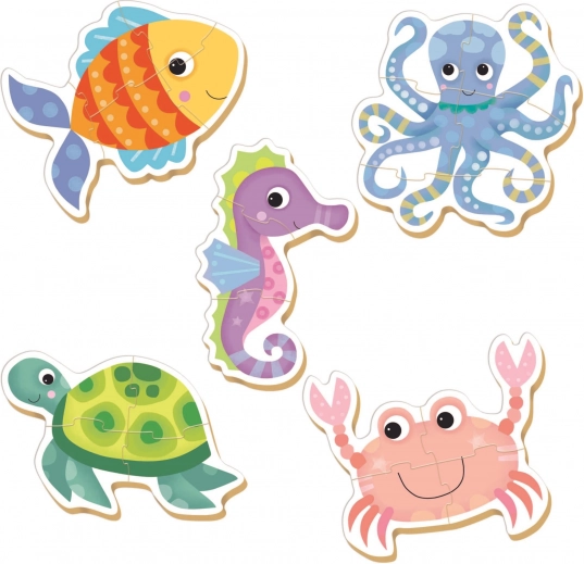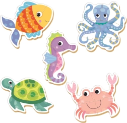 Ribica, hobotnica, morski konjić, kornjača i rak u živim bojama privlače pažnju i motiviraju na slaganje.