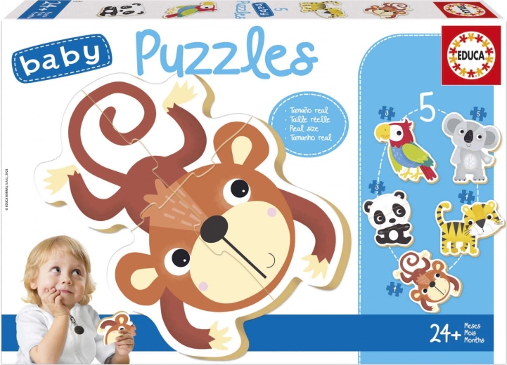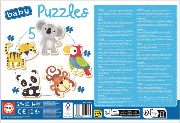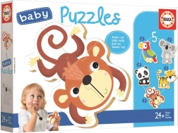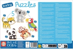 Educa baby puzzle Divlje životinje 5u1 posebno su osmišljene za malu djecu koja tek započinju s puzzlama. Zahvaljujući postepenom povećanju broja dijelova (od 3 do 5) djeca kroz igru stječu samopouzdanje i strpljenje. Veliki i debeli dijelovi lako se hvataju i precizno uklapaju.