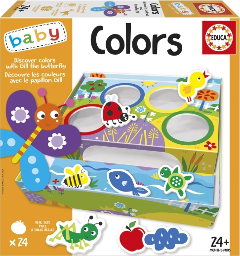 Edukativni set Educa Baby s leptiricom Gretom idealno je pomagalo za prvo upoznavanje boja. Djeca pridružuju obojene elemente odgovarajućim otvorima u kutiji, čime prirodno razvijaju koordinaciju oko–ruka, finu motoriku i koncentraciju. Veliki i izdržljivi dijelovi prilagođeni su malim rukama.