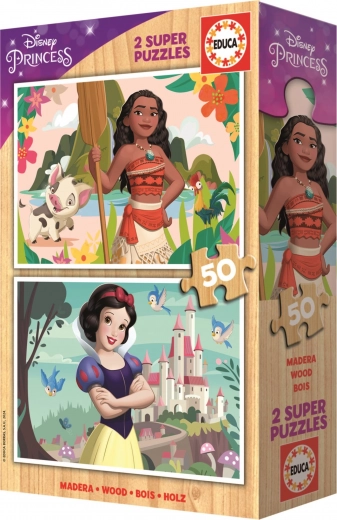 Sa setom drvenih puzzli DISNEY PRINCEZE dobivate dvije prekrasne slagalice s motivima VAIANA i SNJEGULJICA. Zahvaljujući velikim, čvrstim dijelovima djeci se lako drže i slažu. Prirodan drveni materijal je izdržljiv, ugodan na dodir i pogodan za svakodnevnu igru.