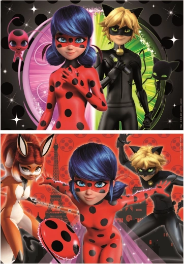 Dvaput pakiranje dječjih puzzli s motivom Miraculous: Bubamara i Crni mačak brenda EDUCA donosi zabavu i razvoj vještina. Svaka slagalica ima 48 dijelova, živopisne boje i atraktivan motiv koji će djecu odmah privući.