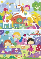 Razvijte dječju maštu s čarobnim kompletom slagalica s motivom jednoroga i vila. Pakiranje sadrži 2 slagalice po 48 dijelova istih dimenzija, idealne za vježbanje koncentracije, logike i fine motorike. Gotove slike imaju kompaktne dimenzije cca 28 × 20 cm, koje savršeno odgovaraju dječjem stoliću.