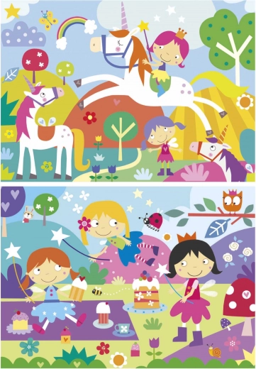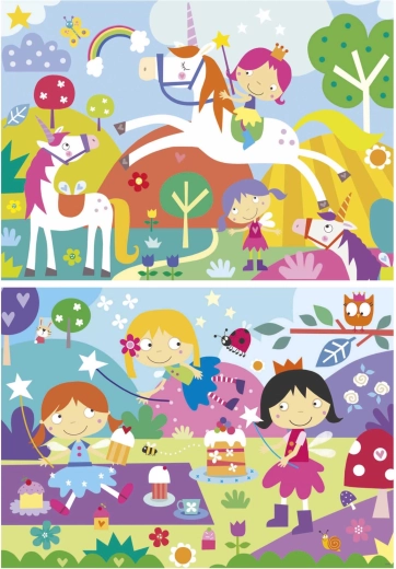 Ovaj set od dvije slagalice razveselit će sve male ljubitelje bajkovitih motiva. Zahvaljujući istoj veličini i broju dijelova, obje su slike savršene za djecu koja žele poboljšati uočavanje detalja i strpljenje. Kvalitetan tisak i žive boje jamče prekrasan rezultat koji će djeca rado slagati iznova i iznova.