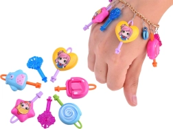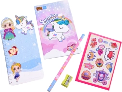 - 7 ključića; olovka; šiljilo; lančić; 2 privjeska za narukvice; šarene perlice; lančić za narukvicu; ukras – sklopivo srce; kukice; privjesci; naljepnice; bilježnica; kartonsko ravnalo s princezom; označivač stranica s jednorogom