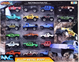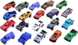 Veliki set od 20 metalnih autića razveselit će male kolekcionare i ljubitelje utrka. Modeli imaju metalnu karoseriju na plastičnom podvozju, obuhvaćaju terenska vozila i pick-upove s detaljnom izradom i privlačnom grafikom. Svaki model dug je približno 7,5–8 cm.