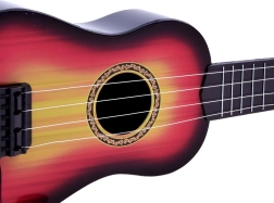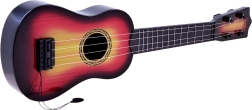 Ova dječja gitara odličan je izbor za male ljubitelje glazbe koji žele otkrivati svijet tonova i akorda. Zahvaljujući kompaktnim dimenzijama djeci dobro leži u ruci, plastično tijelo s imitacijom drva djeluje elegantno i izdržljivo. Četiri metalne žice i jednostavna regulacija na vratu pomažu postići čišći zvuk i potiču na daljnje sviranje.