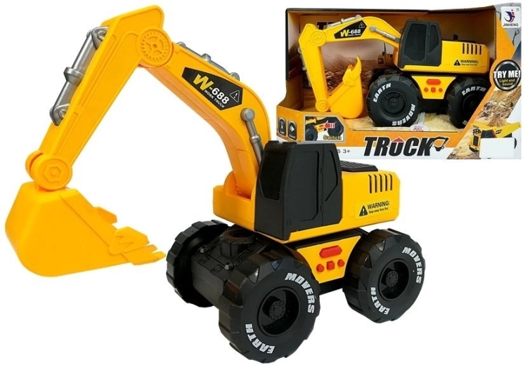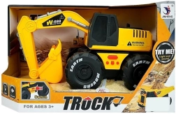 Prednja svjetla svijetle, a tipke aktiviraju trubu, zvuk vožnje unatrag i druge efekte koji dočaravaju pravi rad na gradilištu.