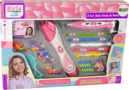 Ovaj komplet za ukrašavanje kose omogućuje djeci da izraze svoju maštu. Uz dva alata za aplikaciju perlica i uvrtanje niti lako ćete stvoriti originalne frizure – od suptilnih pletenica s obojenim nitima do izražajnih uzoraka s perlicama.