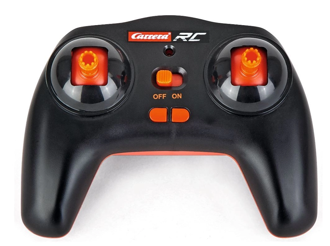 Ergonomski crni daljinski upravljač s crvenim polugama pruža jednostavno i intuitivno upravljanje vašim RC automobilom.