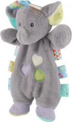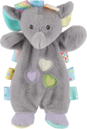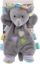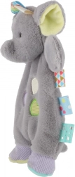 Ova mekana mazilna igračka u obliku slonića spaja udobnost i poticajnu igru. Mekani pliš, pastelni detalji i više šarenih etiketa uz rubove mame na hvatanje i opipavanje, čime podupiru finu motoriku i senzorni razvoj djece već od rođenja.
