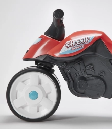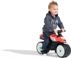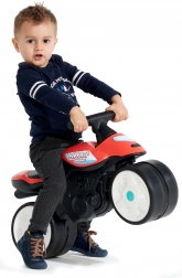 Stilska guralica Falk Baby Moto Team Bud Racing u crvenoj boji odličan je prvi mali motocikl za male vozače. Zahvaljujući tihim gumenim kotačićima prikladna je i za stan i za dvorište, a djeci pomaže razvijati stabilnost, motoriku i samopouzdanje. Nisko težište i visina sjedala 29 cm osiguravaju udobno sjedanje i sigurnu vožnju.