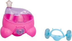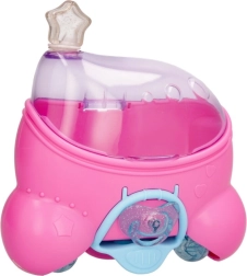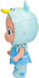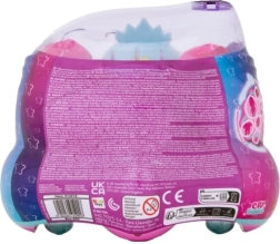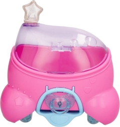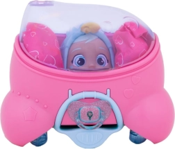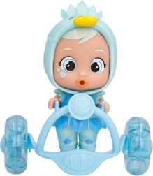 Igračka Cry Babies Magic Tears Sydney obučena je u futuristički kostim sa sjajnim detaljima, u kućici oblikovanoj kao zvijezda. Ova kućica ne samo da štiti lutku, već se uklanjanjem ružičastih kotačića pretvara u segway, na kojem Sydney može voziti.