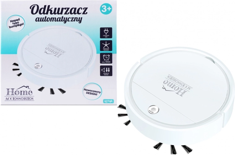 Praktičan robotski usisavač za svakodnevno čišćenje tvrdih podova i niskih tepiha. Nudi automatsko usisavanje, izvajajući spremnik s filtrom, realističan zvuk usisavača i pametno kretanje bump’n’go. Upravlja se jednostavno zahvaljujući pozadanom gumbu on/off i rotirajućim bočnim četkama za učinkovito skupljanje nečistoća.