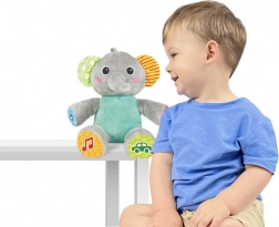 Ovaj interaktivni plišani slonić osmišljen je kako bi poticao osjetila vašeg djeteta. S šarenim i uzorkovanim ušima i nožicama idealan je za maženje i igru. Zahvaljujući raznolikim funkcijama, koje uključuju senzorne elemente i interaktivne zvukove, postaje sjajan pratitelj za svakodnevne avanture.