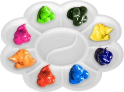 Plastična paleta u obliku cvijeta olakšava odvajanje i miješanje boja, održava red tijekom rada i štedi vrijeme.