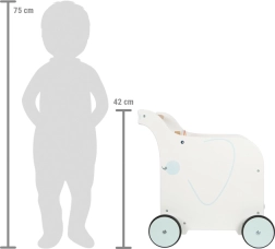 Hodalica je opremljena čvrstom ručkom prikladnom za male dječje ruke, što im pomaže u prvim samostalnim koracima. Proizvod je siguran zahvaljujući gumiranim kotačima i stabilnoj konstrukciji.