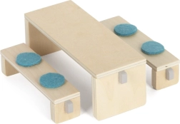 Blagovaonski stol s klupama i tabureima stvara ugodan ambijent za lutke.