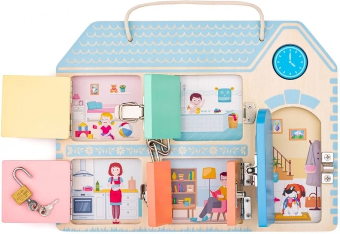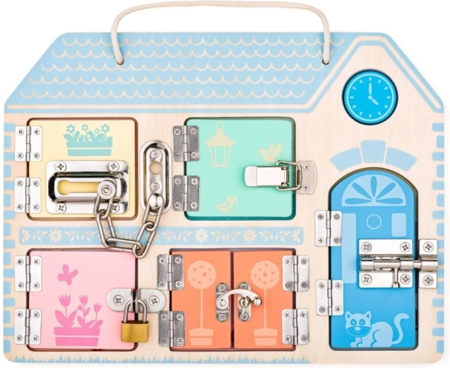 Ova motorička ploča idealna je igračka za djecu od 3 godine. Pomaže razvijati finu motoriku i logičko razmišljanje kroz interakciju s bravama i osiguranjima.