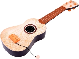 Ova gitara-igračka osmišljena je za male glazbenike koji vole glazbu i žele isprobati prve akorde. Plastično tijelo u imitaciji prirodnog drva ostavlja profesionalan dojam, a istovremeno je lagano i izdržljivo za dječje ruke.