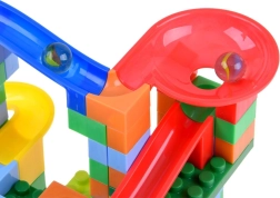 Ova šarena staza za kuglice od građevnih blokova idealan je izbor za djecu koja vole stvarati i otkrivati. Set sadrži blokove različitih oblika i boja za izgradnju zamršenih staza za kuglice.