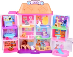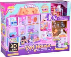 Sklopiva kućica za kućne ljubimce Pet House pretvara dječju sobu u raznobojan svijet životinja. Nudi 11 prostorija, funkcionalno dizalo, krovnu terasu s bazenom i realističko zvono. Bogat set figurica i dodataka te mogućnost jednostavne montaže i preuređenja potiču maštu i finu motoriku.