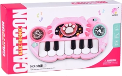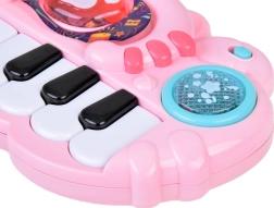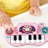 Ova šarena glazbena igračka spaja zabavu i učenje: tipke sviraju osnovne tonove, posebne tipke pokreću bubnjarske zvukove i vesele melodije, dok svjetla na panelu vizualno reagiraju na svaki pritisak. Djeca vježbaju sluh, vid i dodir te istovremeno razvijaju finu motoriku.