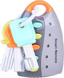 Preslatki set ključeva s privjeskom – daljinskim upravljačem – sigurna je igračka za najmlađe. Nudi melodije, realistične zvukove automobila (zvono, klakson, paljenje motora, zaključavanje/otključavanje) i trepćuća svjetla. Izdržljiva plastika i baterije u pakiranju = zabava odmah!